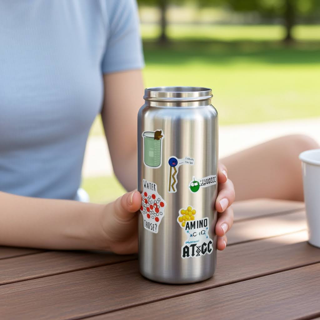 Pack de 10 stickers autoadhesivos con motivos relacionados a la química biológica.
